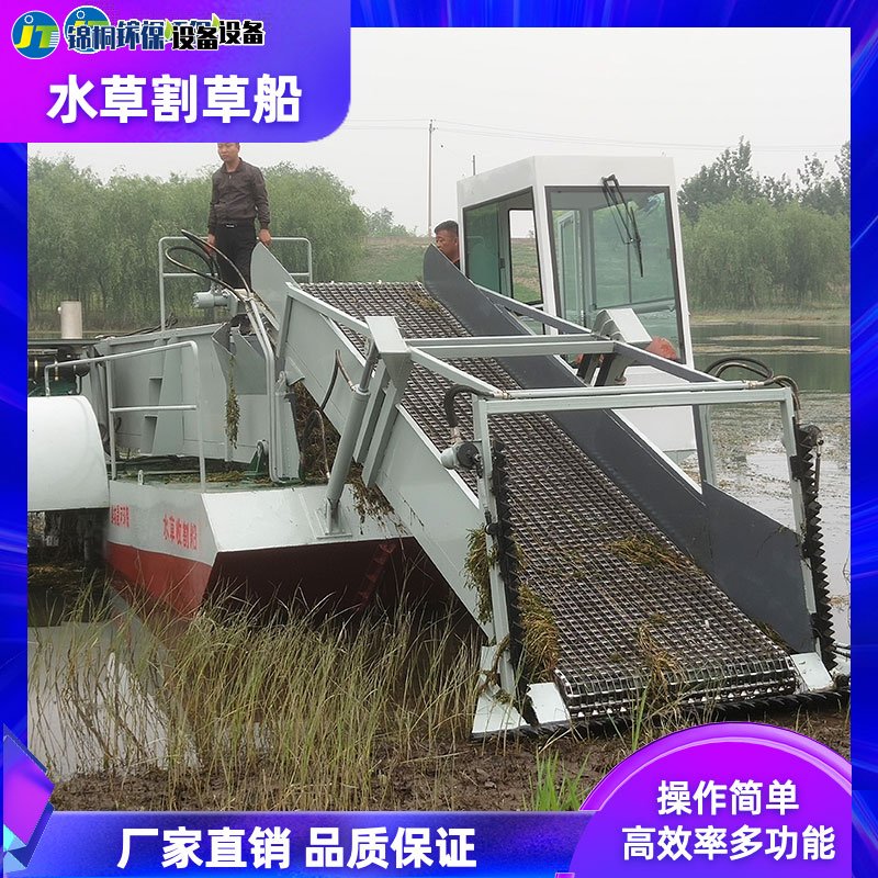 前舱纵向安装两个切割收集顺轮,能有效的对水草进行环行切割,在切割收集水草的时候,配合横向切割剪刀进行水草收集。该设备是除草、保洁两用船,功能强大,并且环保节能、使用范围广、淸草面积大、高效快捷、实用性强、装载量大、不仅代替人工作业提高了劳动效率,也减轻了工人们的体力劳动,对河湖保护水生态环境工作起到了事半功倍的效果。