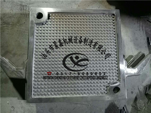 晨鑫牌壓濾機濾板分為板框式濾板濾框和廂式濾板。下邊我們簡單的說一下板框式濾板濾框和廂式濾板的區(qū)別。廂式濾板由板框式濾板及濾框的角上進料改成,板式濾框的1/2厚度增加在板式濾板的兩側(cè)面,板式濾板濾框合成—體,角上進料變?yōu)橹虚g進料,進料孔加大,避免料孔堵塞,濾板強度增加,進料過濾壓力提高,過濾速度加快,出渣方便,降低濾餅含水率與操作勞動強度。當然有些客戶朋友的需求可能不盡相同,我們可根據(jù)用戶的圖紙來生產(chǎn)各種型號的濾板,也可與客戶朋友溝通后自行設計能滿足用戶朋友要求的壓濾機濾板濾框。