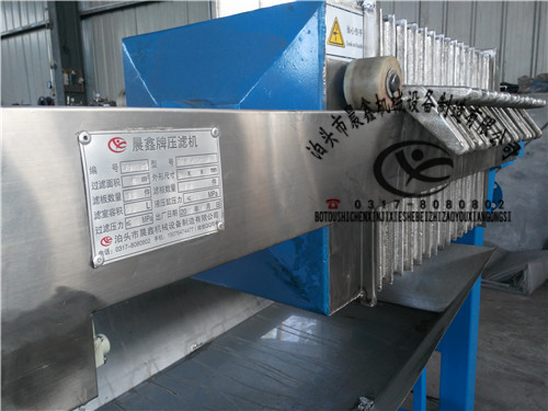 怎樣放置安裝金屬壓濾機濾板濾框?壓濾機濾板濾框要保持整齊,使各孔位對正,明流的壓濾機要將出液水嘴安裝在濾板下端,并擰緊;如用戶要求使用接液盤的,機架上的支腿應比基礎面高出一定的尺寸,留出附屬設備的空間。。濾板要整齊排列在機架上(尤其是板框式濾板,一定要按次序整齊排列),不允許出現傾斜現象,以免影響壓濾機的正常使用;濾布一定要保持平整,不能有折疊,否則會出現料漿泄漏的現象,有夾布器的一定要擰緊,使濾布貼緊在進料口處,不然會使料漿進入濾布和壓濾機濾板之間,也會影響壓濾機的正常使用。